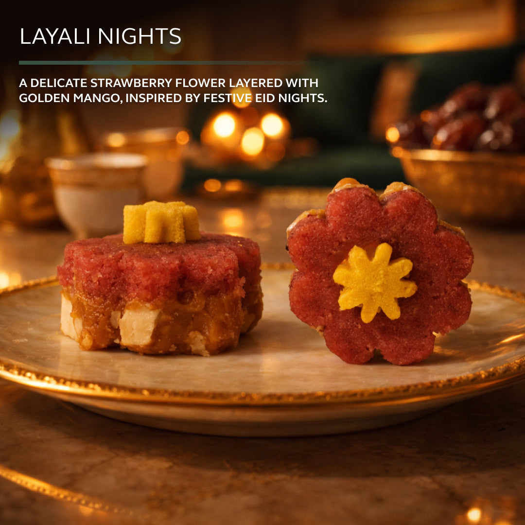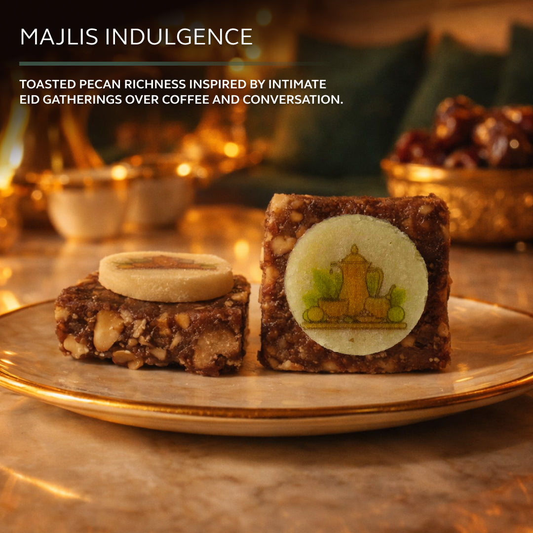 Ingredients: Dried Fruits: Dates, Chia Seed, Flax Seed, Blueberry, Quinoa, Almond Powder, Pistachio Powder, Açaí Powder, Japanese Green Tea (Matcha) Powder, Agave, Cacao Butter. Permitted Colors